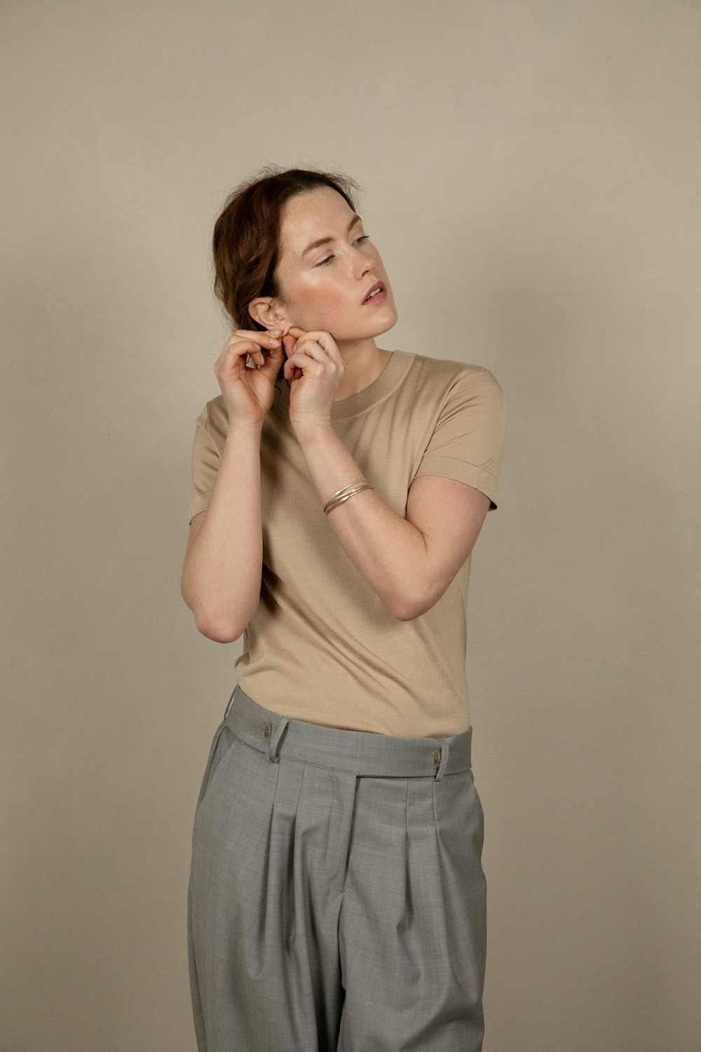 - As low as £87.00 Regular Price £145.00SOFT BEIGE V-NECK WOOL SILK KNITTED TOP